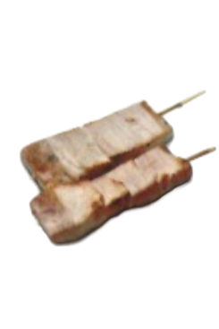 Salade, soupe, riz; 7 brochettes : 1 bœuf, 1 poulet, 3 bœuf au fromage, 1 boulette de poulet, 1 aile de poulet